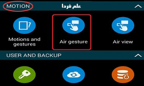 دیدن نوتیفیکیشن بدون تماس دست در گوشی های گلکسی اس ۴ ، گلکسی اس ۵ ، گلکسی نوت ۲ ، نوت ۳ و نوت ۴ قابل اجراست . پس اگه یکی از این گوشی ها رو دارید واسه فعال کردن قابلیت Quick Glance به settings برید و تو قسمت motion و از اونجا گزینه Air gesture رو انتخاب و فعال کنید .