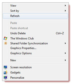 Desktop در واقع یک پوشه در سیستم عامل ویندوز است که طوری برنامه نویسی شده ( program شده ) که هر موقع محتوایات آن ( شامل پوشه یا هر نوع فایل ) تغییر کرد ، فایل یا فولدر تغییر یافته ، به طور خودکار بروز رسانی شود . منظور از بروز رسانی این است که فایل جدید ( فایلی که تغییراتی در آن اعمال شده) جایگزین فایل قبلی می شود . اما ممکن است در برخی موارد دستور refresh به طور اتومات انجام نشود که در این مواقع شما می توانید به صورت دستی خودتان این کار را انجام دهید . اگر با یکی از شرایط زیر مواجه شدید خودتان دستور refresh را اجرا کنید :